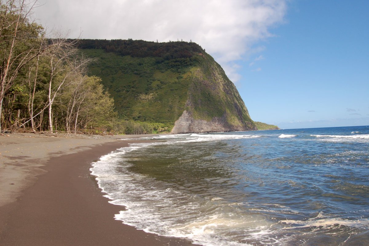 Waipio Beach's raw beauty is stunning, but swimming here can be dangerous. As with many Hawaiian beaches, the surf can be high and rip tides treacherous. There are several accessible coastal waterfalls to your right as you are facing the ocean. Approximately 10 minutes of rock walking along the coast should guide you to Kaluahine Falls. If this one is dry, and many times it is, just another 20 minutes or so down the coast is Waiulili Falls. Make sure to exercise extreme caution while walking along the coast. Never turn your back on the ocean and try to attempt the hike at low tide.