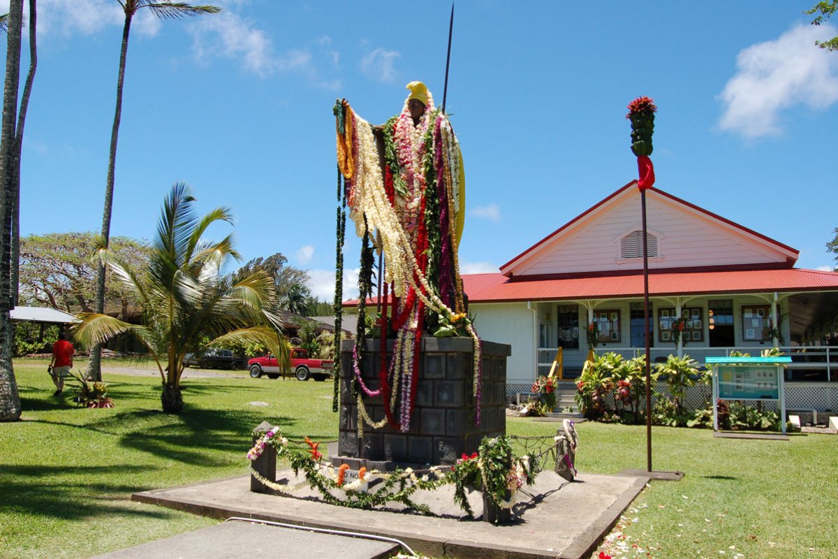 Unfortunately, the voyage was ill-fated, and the ship burned and sank, leaving the statue beneath the ocean somewhere near the Falkland Islands. A new statue was eventually recast from the original mold and sent to Honolulu. Years later, the lost statue was found and taken to Kapa'au in the Big Island near King Kamehameha's birthplace. In addition to the statues in Honolulu and Kapa'au, there are two more, one on the other side of the Big Island in Hilo and another in Statuary Hall in Washington D.C. If you are fortunate enough to be on the Big Island or Oahu for King Kamehameha Day on June 11, you can witness a truly awe-inspiring tradition. Fantastically long flower leis will be draped on the statue, his outstretched arms and around his neck.