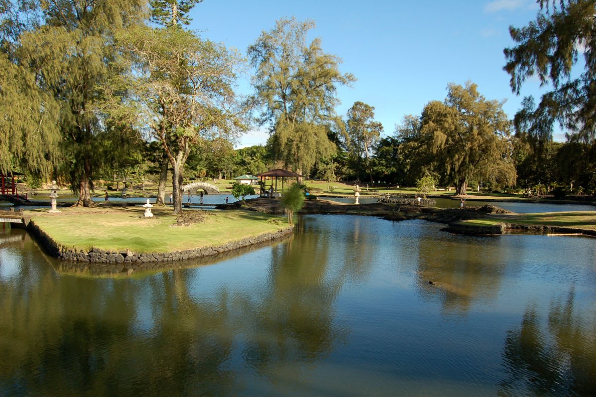 Lili'uokalani Park was named in honor of Hawaii's last queen and features a meticulously manicured Japanese landscape ringed by sprawling banyan trees.