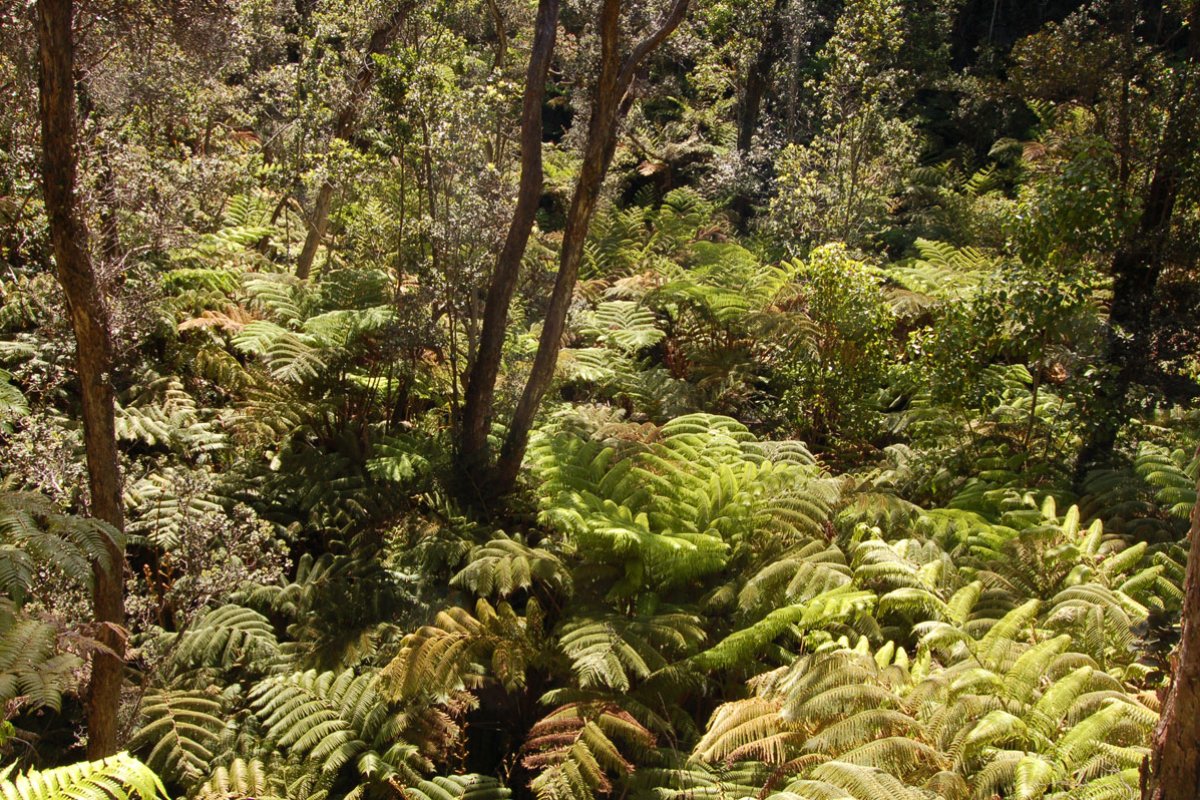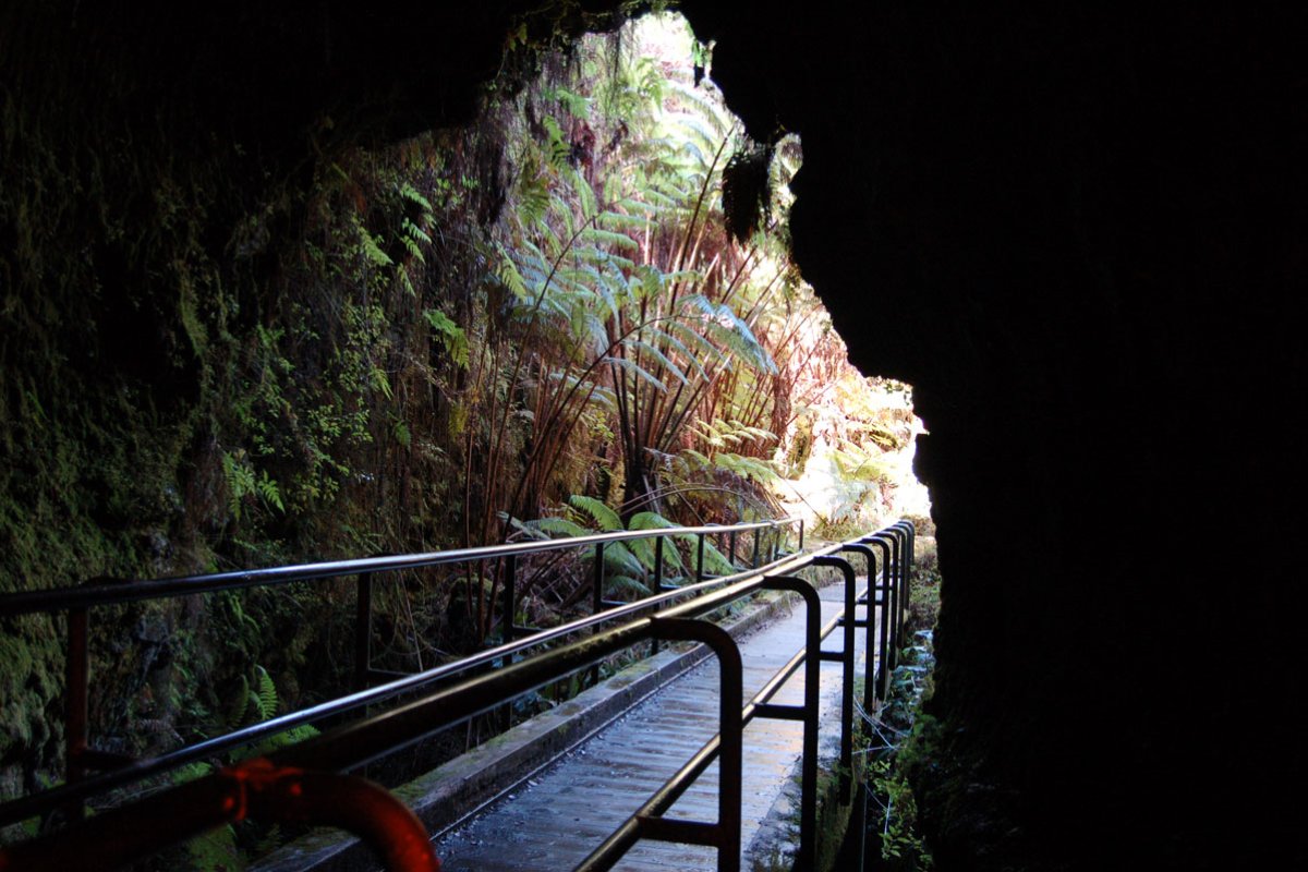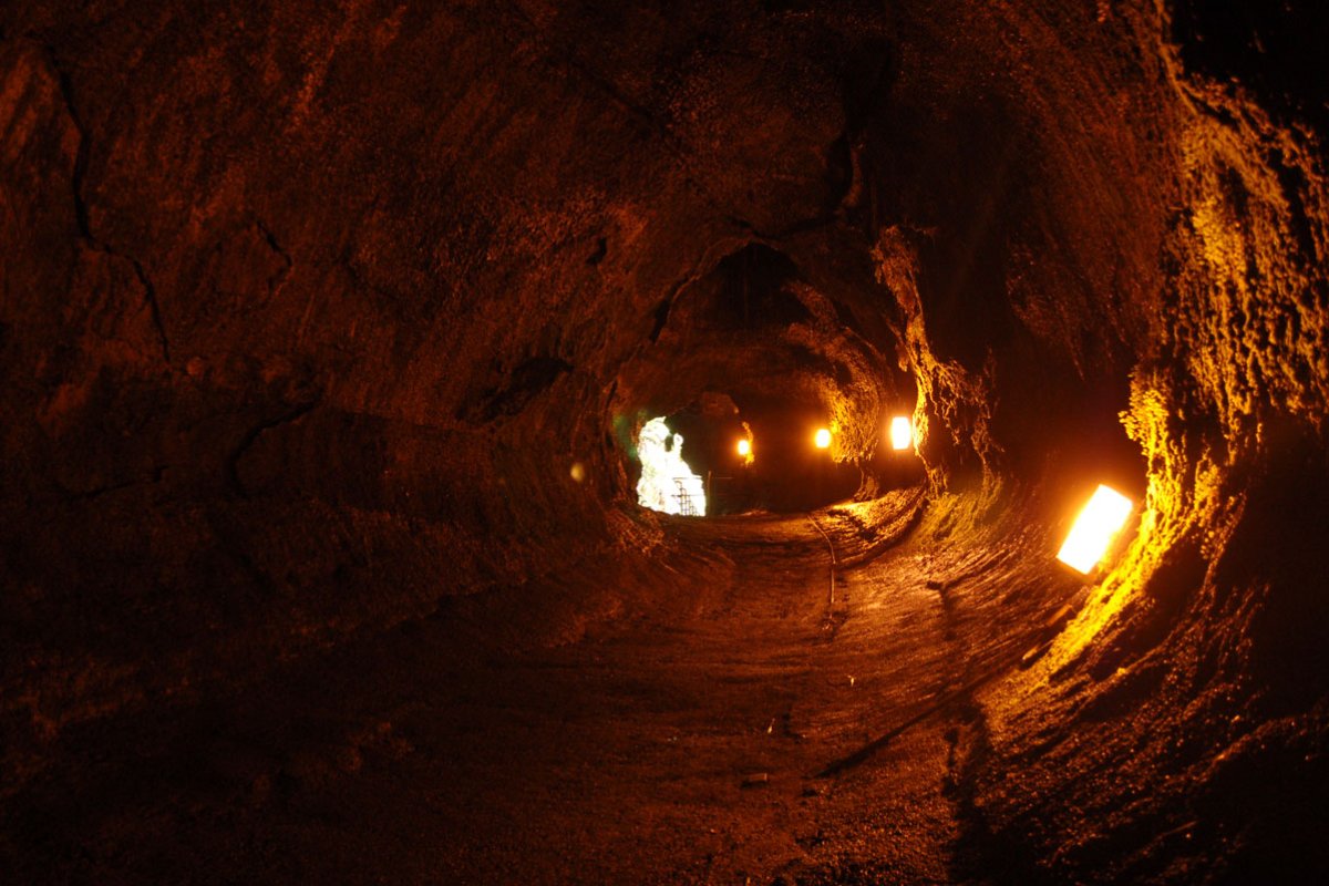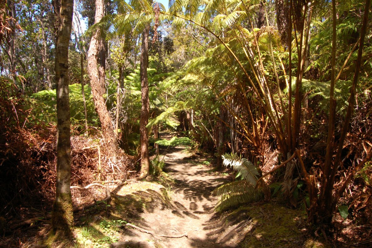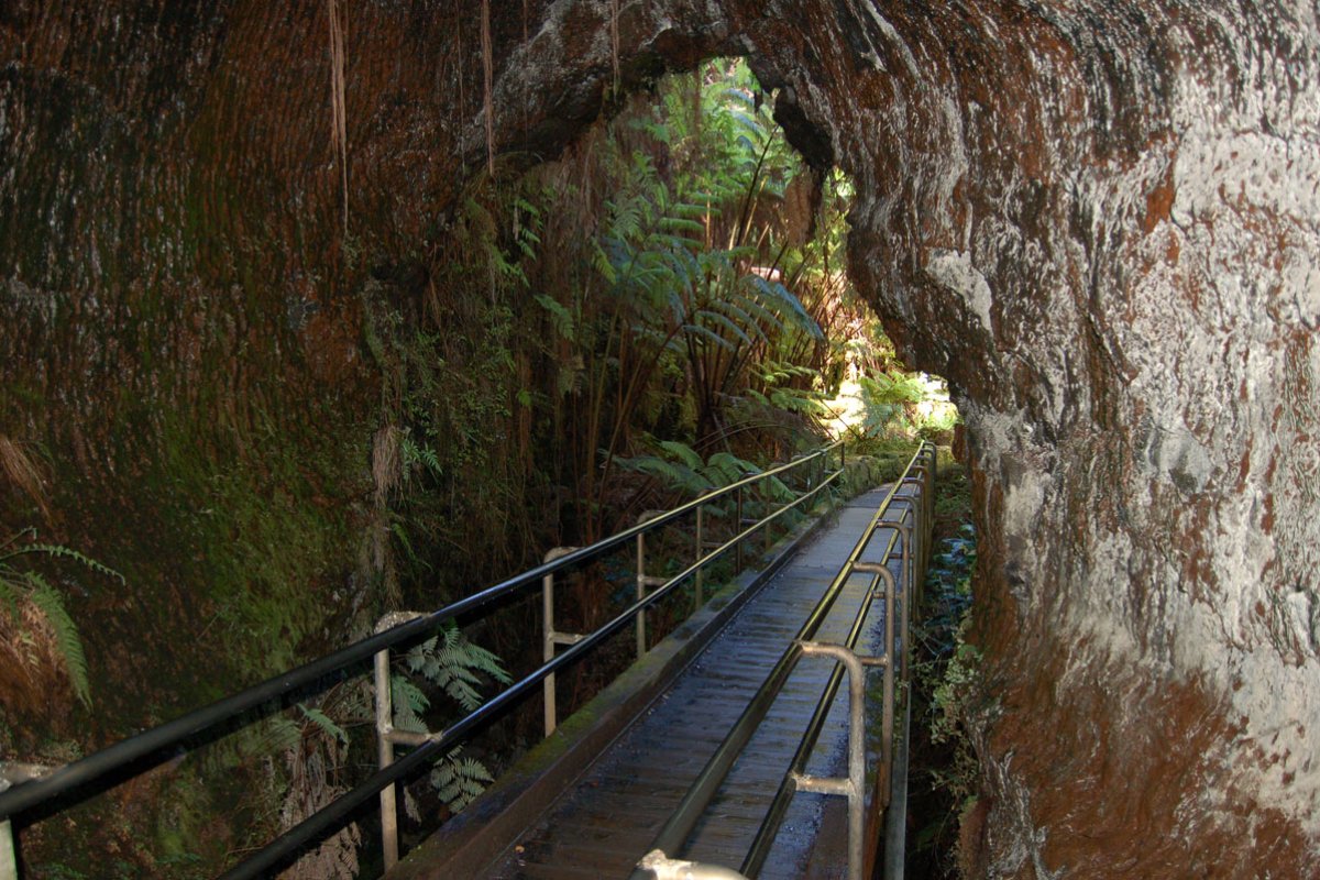 You will take a short trail through lush vegetation replete with tropical ferns and singing honeycreeper birds called Apapane. Cross a short bridge, and you enter the dark world of a lava tube. Lit for safety, the tube is a fascinating experience that ends too quickly. When you reach daylight, you have the opportunity to continue through a gated area into the un-lit portion of the cave if you so choose. Make sure to bring a strong flashlight! Restrooms are available near the entrance to the trail. 1 1/2 miles east of the junction of Crater Rim Drive and Chain of Craters Road in Hawaii Volcanoes National Park.