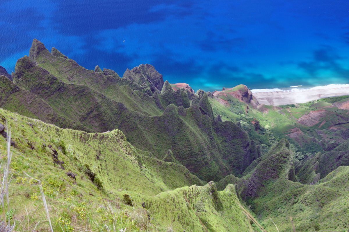 The Kalepa Ridge hike will take you along the ridge line between Honopu and Kalalau Valley, offering some of the most incredible views into Kalalau Valley that can be seen from anywhere on the island, surpassing even the view from a helicopter (because you actually get to soak the view in over the course of several minutes).