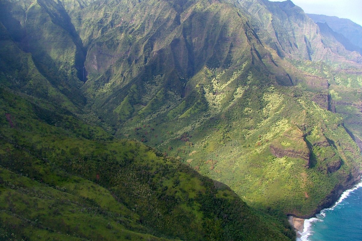 Total elevation gain for the segment between Ke`e and Hanakapi`ai is about 1060 feet (that's coming and going), and the hike takes approximately an hour and a half at a moderate pace. As noted, the falls are another two miles inland, and it can take up to two hours to reach the falls. The hike requires numerous stream crossings. Total elevation gain to the falls from Hanakapiai Beach is 760 feet. This is a moderately strenuous hike.
