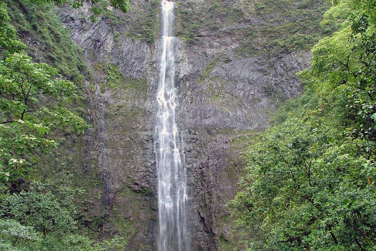 Hanakapi'ai Falls isn't a waterfall most visitors will ever see. Nestled deep inside Hanakapi'ai Valley on the Na Pali coast, it'll take some effort to reach. After hiking two miles of rugged terrain of the Kalalau Trail you'll have to another two miles inland via the Hanakapiai Falls Trail, along one of the most rugged trails we've ever taken, to reach this 410 foot beautiful falls located on the back valley wall. Take notice of the native plant life as well as the small bamboo forests you will pass through.