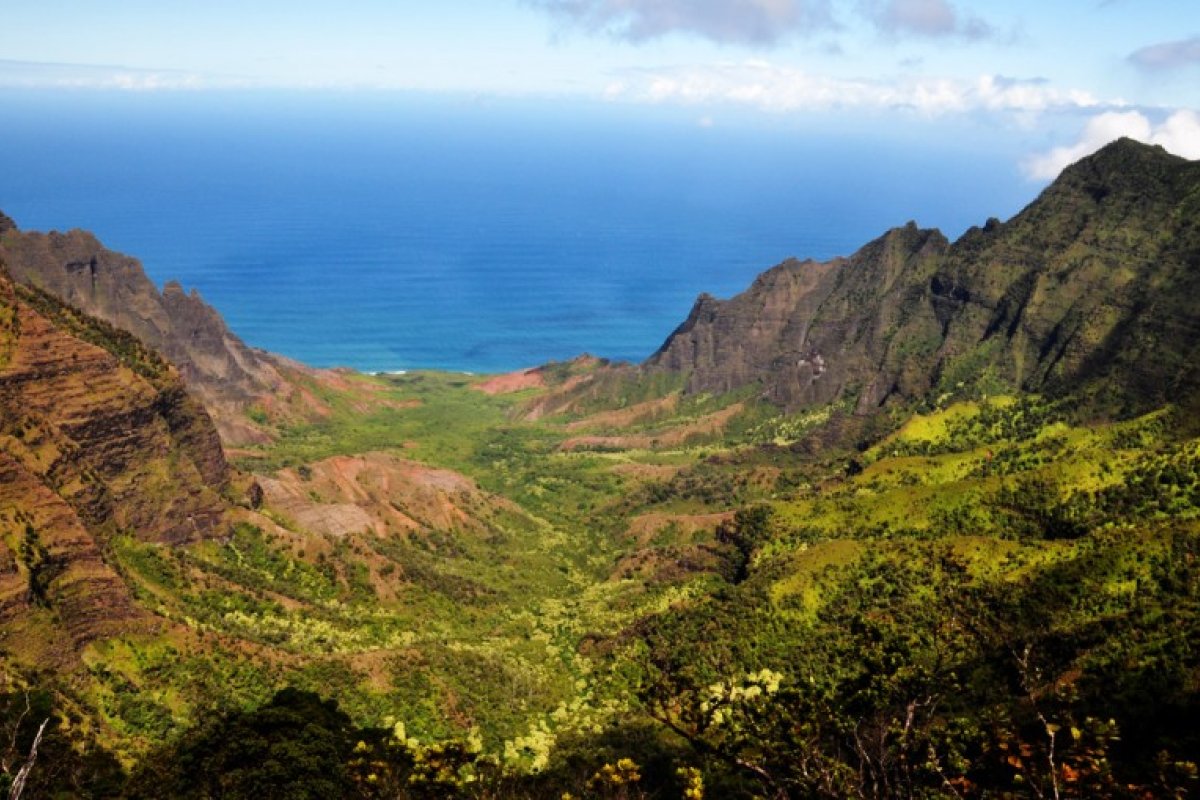 At the very end of Highway 550 in Kokee State Park awaits one of the most jaw dropping lookouts on the island; a panoramic view into Kalalau Valley and scenic views overlooking the Alakai Swamp (the highest swamp in the world). The views here are even better than those found at the official Kalalau lookout a mile back on the road. Clouds permitting, the views into Kalalau Valley are superb at this location, and you can venture right up to the edge of the valley to snap that perfect photograph. The swamp that stretches out behind you is the wettest place on earth, ending at the summit of Waialeale. The appearance of the valley, the widest and largest on the Na Pali Coast, may shift from moment to moment as the sun and clouds play across the fluted cliffs that line it. We have found that the best time to view the valley is before 11 AM, as clouds are constantly moving in and out of the valley and are especially thick in the afternoon and evening. However, you also don't want to get there too early because the valley won't have full sun on it until around 8 AM most mornings (seasonal changes apply of course). If you arrive to a cloudy or mist-filled valley, consider the direction of the trades when you arrive. If the wind is blowing from the land towards the ocean, the clouds will usually enter the valley and fall (thus disappearing into the warm air below). However, if the wind is blowing from the ocean inland, the clouds will bank up inside the valley and not dissipate but rather thicken into cloud soup. So keep that in mind during your visit. This stop is also the start of the Pihea Trial which meanders along the back of Kalalau Valley before turning into the Alakai swamp to join up with the Alakai Swamp trail (a great day hike). Take Highway 50 west from Hanapepe toward Waimea. Turn right on Waimea Canyon Road just after Mile Marker #23. Puu o KIla Lookout is located at the end of the road at Mile Marker #19.