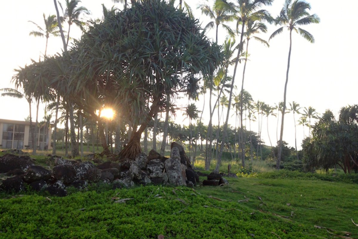 The Kukui heiau is also a cultural site that is a part of Wailuanuiaho’ano. It is situated across the rivermouth from Hauola, at Alakukua Point. Apparently it was a navigational heiau – oral traditions indicate that the site served Polynesian navigators on canoe voyages to and from Kauai.