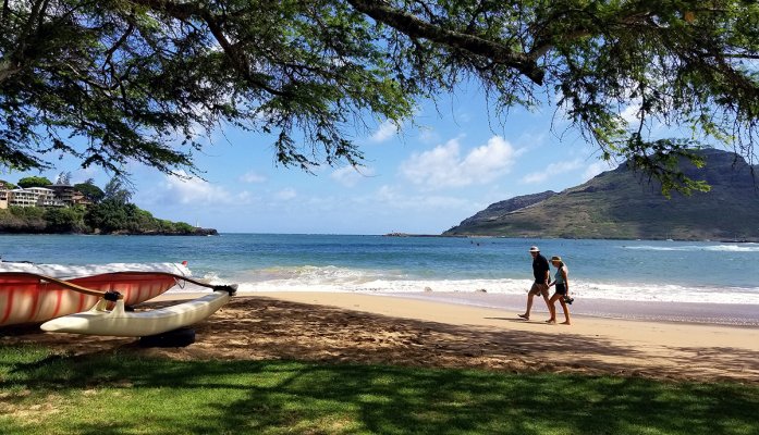 Kalapaki Beach is a popular destination, offering many ways to get active, including swimming, surfing, body surfing, and well-kept beaches that are safe and very walkable. There are also opportunities for kids to enjoy ocean activities, as the beach doesn't often experience dangerous waves. Cool off with a shaved ice from the Kalapaki Beach Hut.