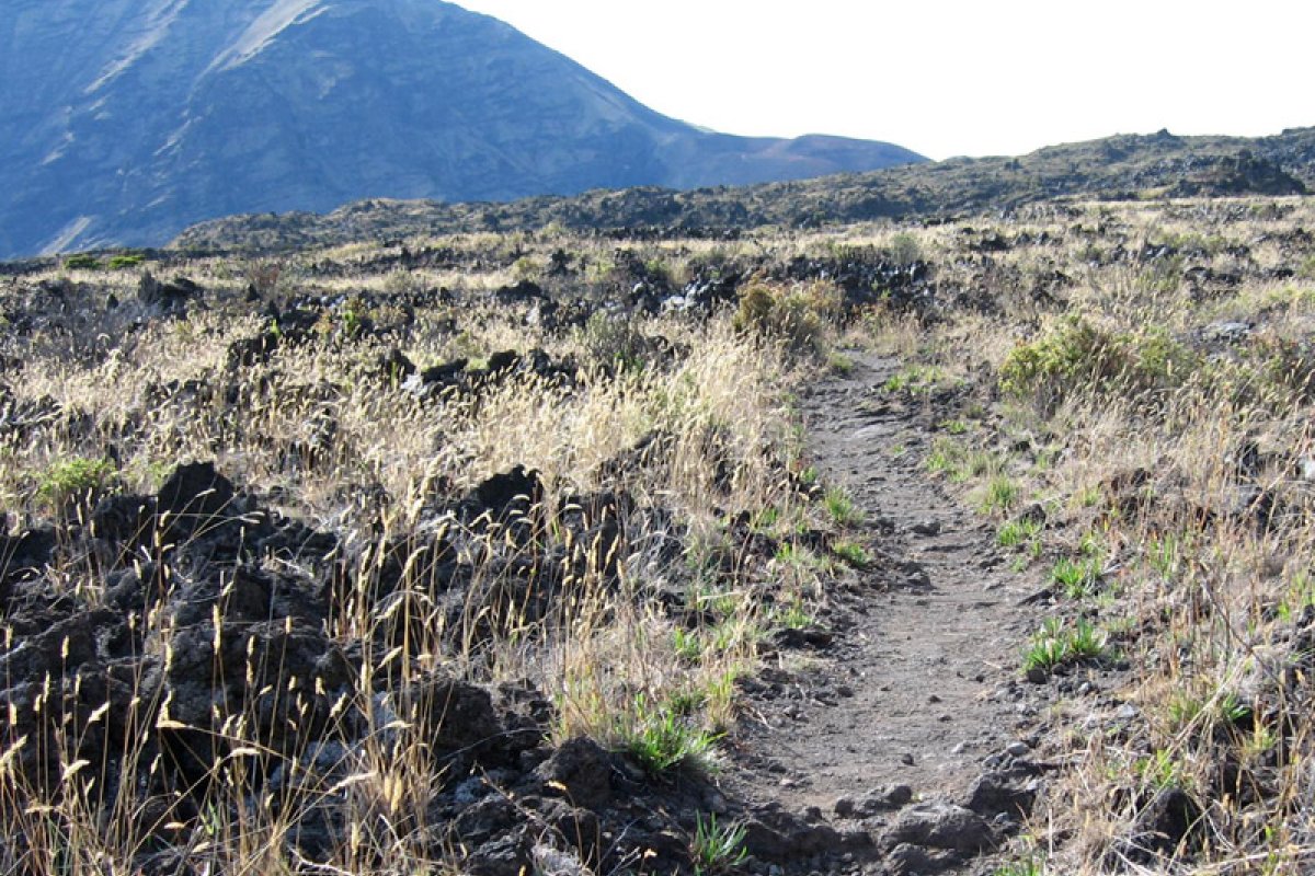 The trail starts from the House of the Sun Visitor Center parking lot as the Keoneheehee or Sliding Sands Trail. It descends 2,500 ft. in 3.9 miles to the valley floor. At this point, the trail splits and a hiker on this route would take the left fork off of Keoneheehee Trail onto a spur trail where signs lead toward Holua. This spur trail travels up past colorful cinder cones and varied terrain. From Holua, travel approximately one mile across a grassland area to the base of a 1,000-foot cliff. After hiking up two miles of switchbacks, the trail levels off and continues one more mile to the Halemauu Trailhead and parking lot. The average time to complete this route is 6-8 hours. Get an early start so you can get the most out of your hike and make it back to your car before nightfall.