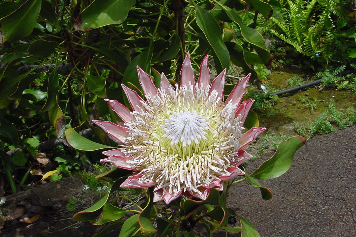The true king of this garden is the showy protea. Established in 1968 by Warren and Helen McCord as a display garden for Warren's landscape architecture business, the garden has evolved into a tourist destination that draws thousands of visitors every year. We continue to be an entirely family owned and operated business and take pride in sharing our garden with you. The garden is located on the slopes of Haleakala and encompasses 8 acres of colorful and unique plants, amazing rock formations, a covered bridge, waterfalls, koi pond, aviary and new attractions including the carved tiki exhibit. Kula Botanical Garden has hundreds of varieties of plants for you to enjoy and photograph. Plants are labeled with their botanical name, common name, and country of origin. Included in the garden is a collection of native Hawaiian plants. Children especially will enjoy the Jackson Chameleon exhibit, Nene geese, African Cranes, and Aviary.