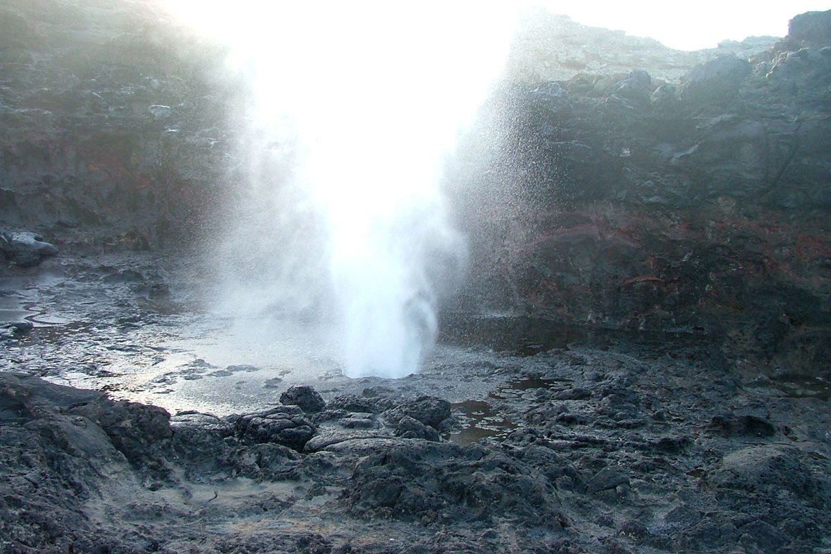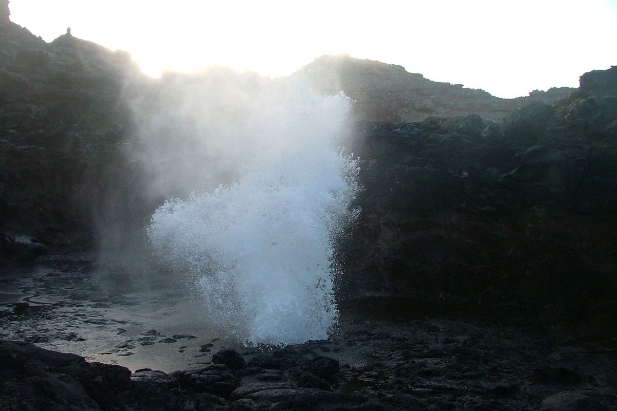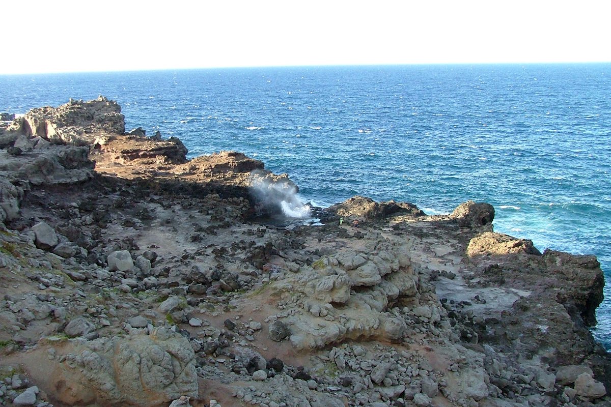The North West drive from Kapalu around Nakalele Point and on to Wailuku is amazingly beautiful - if the road doesn't scare you off. If you are coming from the North you will pass the pineapple fields of Kapalua, a famous surfing spot at, Honolua Bay and then Honokolau Valley. Nakalele Point and light beacon is immediately after the valley. When high tide and high surf combine you are likely to witness an explosive show from the Nakalele Blowhole. This phenomenon is caused by the ocean undercutting the shore and forcing seawater up through a large hole in the lava shelf. The blowhole is variable with the tide and surf, high tide is best. It is 1,200 feet from the road down an incline. Keep your eyes open for a turnout about .5 miles past mile marker 38. You can see the blowhole from this spot but you must follow a trail down approximately 200 feet to reach it. Use extreme caution approaching the blowhole. Make sure you wear good sandals because there is some rock-skipping involved. Remember, it is possible to take a trip down the blowhole should you get too close. Use common sense and enjoy the show.