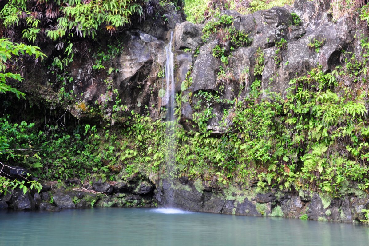 Further down the Hana Highway, around a half-mile past mile marker 22, you'll find Pua'a Ka'a State Wayside Park (that's always fun to say). Here you'll find a paved trail to several small falls and a picnic area. A larger falls can also be accessed upstream via a dirt trail. If you decide to go, use caution crossing the viaduct and be prepared for mud. Mongooses (yes that's plural) also hang out at the park. You may have already seen them streaking across the road. Some bright soul imported them to kill the rats that the sailors brought here on their boats. Well, they killed the ground rats and most of the ground birds but left the tree rats. They are now found on every island except Kaua'i.The little creatures run around this area gathering food left over from picnics. You are also likely to see the wild Jungle Foul (chickens) that frequent the area (that is, if the mongooses haven't gotten to them yet).