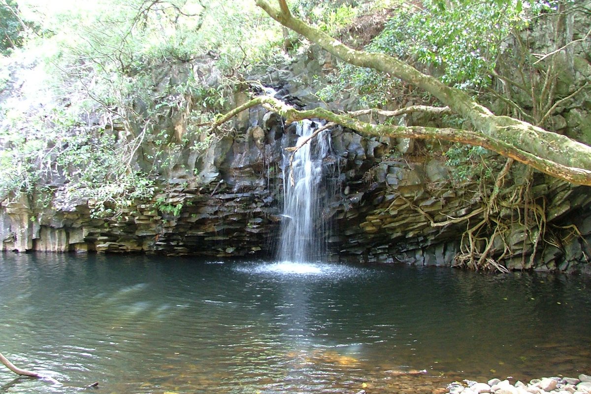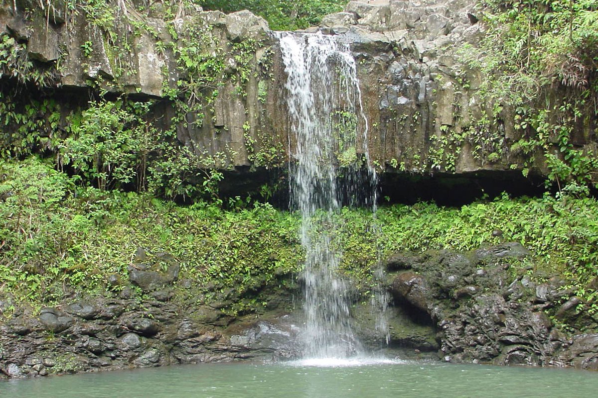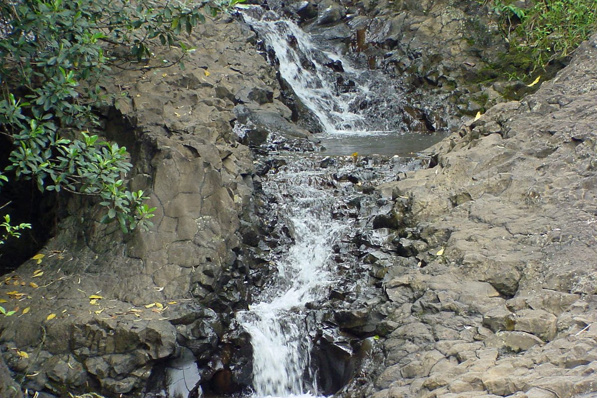 Just beyond mile marker 2 on the Hana Highway a bridge crosses the Ho'olawa nui stream and here you'll find Twin Falls.