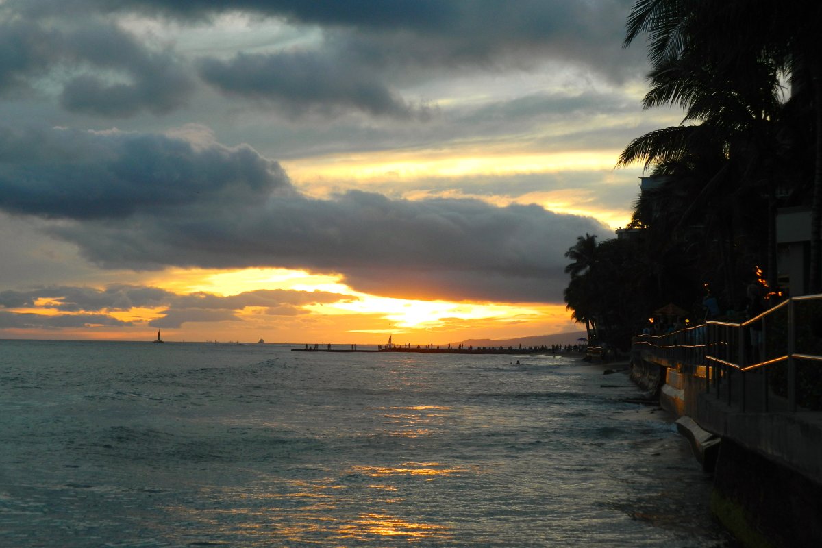 The last stretch of Waikiki Beach is a private paradise where you can enjoy beautiful Hawaiian sunsets. To access it, one must walk across the eastern end of San Souci beach, which has stairs to take them over onto Outrigger Club beach. For easier access, walk through the Lotus at Diamond Head Hotel parking lot and find the small alleyway next to the Colony Surf Hotel that will lead you down onto Outrigger Club Beach. Wearing reef shoes during low tide will make accessing this Beach safer and more accessible.