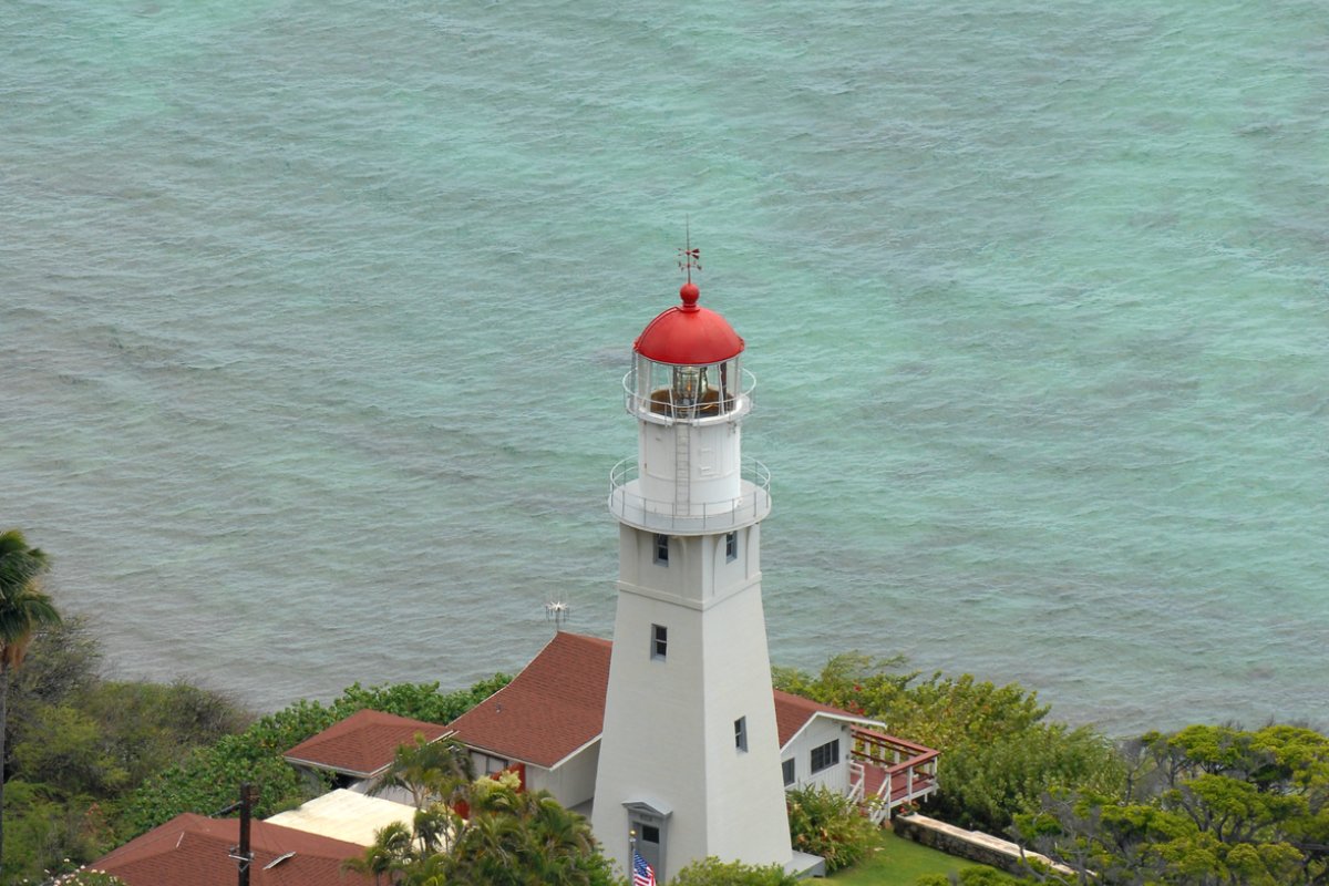 The Diamond Head Lighthouse, originally built in 1899, spreads light nearly 18 miles out into the Pacific Ocean.